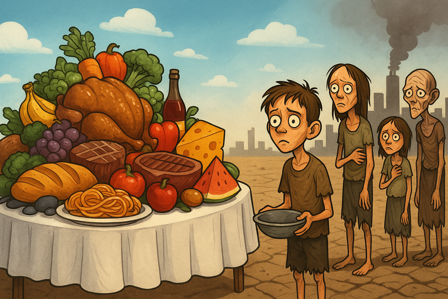Buffet of Doom reveals humanity’s greatest talent: starving on a planet that produces more than enough food. As Earth serves